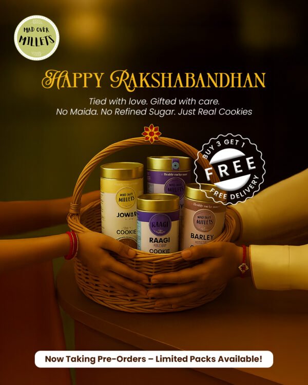 Buy 3 of your favorite Super Cookies – Raagi, Bajra & Jowar and get 1 free – Wheat with Ashwagandha Super Cookies.